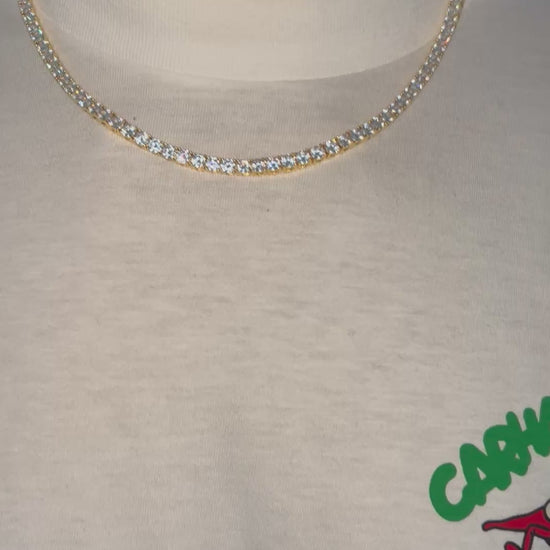 Iced out 14k gold plated gold tennis chain 4mm 20inch cubic zircon choker tennis necklace